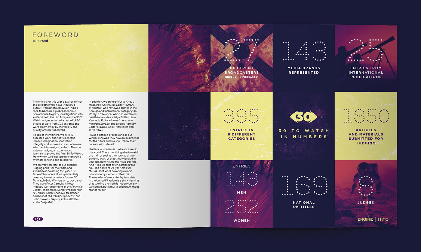 Design for MHP’s annual awards ceremony, recognising the top 30 journalists under the age of 30 for their outstanding contributions to the industry.